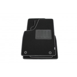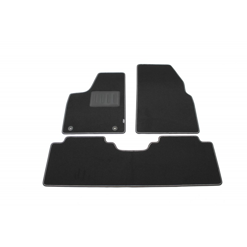 Fondo in Granulato Gommato Antiscivolo. Bordatura Perimetrale in Tessuto Bicolore Nero con Riga Grigio Chiaro, Dotato di Strap Antiscivolo su Tutto il Perimetro del Tappeto e su Tutti i Pezzi che Vanno a Formare il Set della Vostra Auto.